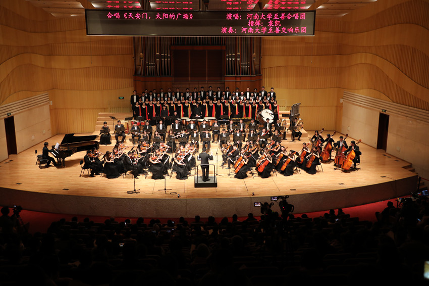 至善民族乐团和至善交响乐团演奏、配乐,以音乐再现壮美山河,用歌声传唱伟大时代。