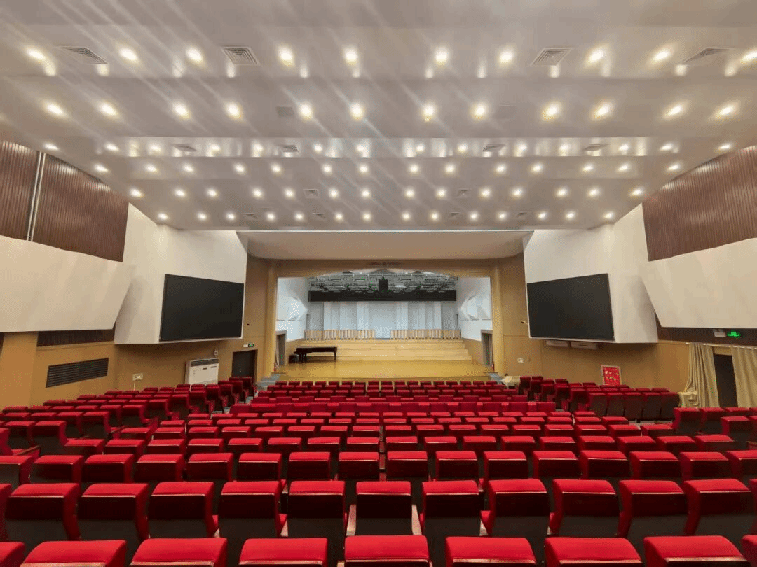 ·音乐厅焕新:作为学院的“艺术会客厅”,音乐厅的改造聚焦“声学性能”与“视觉体验”的双重提升。观众席座椅升级为符合人体工学的软包座椅,顶部加装了定制化声学吊顶。此外,灯光系统升级为LED智能调光设备,满足音乐会、歌剧、舞剧等多种演出需求。