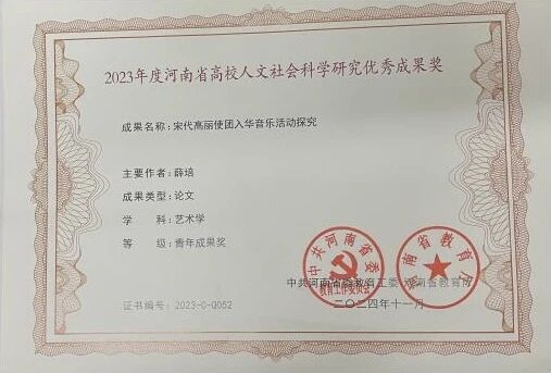 薛培副教授此次申报“河南省本科高校青年骨干教师”的项目名称为《宋代交聘音乐研究》,聚焦复杂政治环境下宋代音乐的跨政权互动,如辽、金、西夏等,具有较强的学术创新性。该研究将直接转化为课程教学资源,深度赋能中国音乐史相关课程,升级课程内容,创新教学方法,丰富课堂知识的同时,进一步拓宽宋代音乐研究领域,从艺术层面为铸牢中华民族共同体意识再添明证。