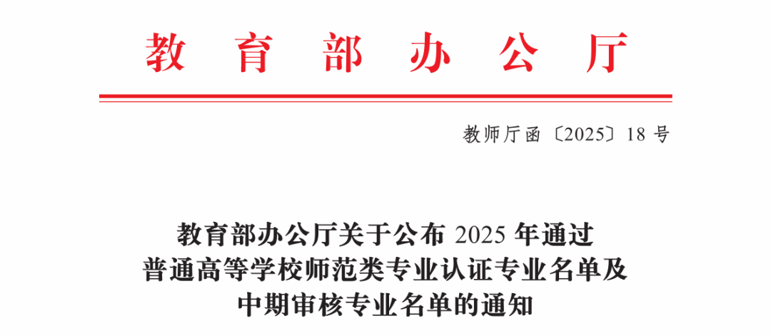 近日,《教育部办公厅关于公布2025年通过普通高等学校师范类专业认证专业名单及中期审核专业名单的通知》正式印发,国产AV
