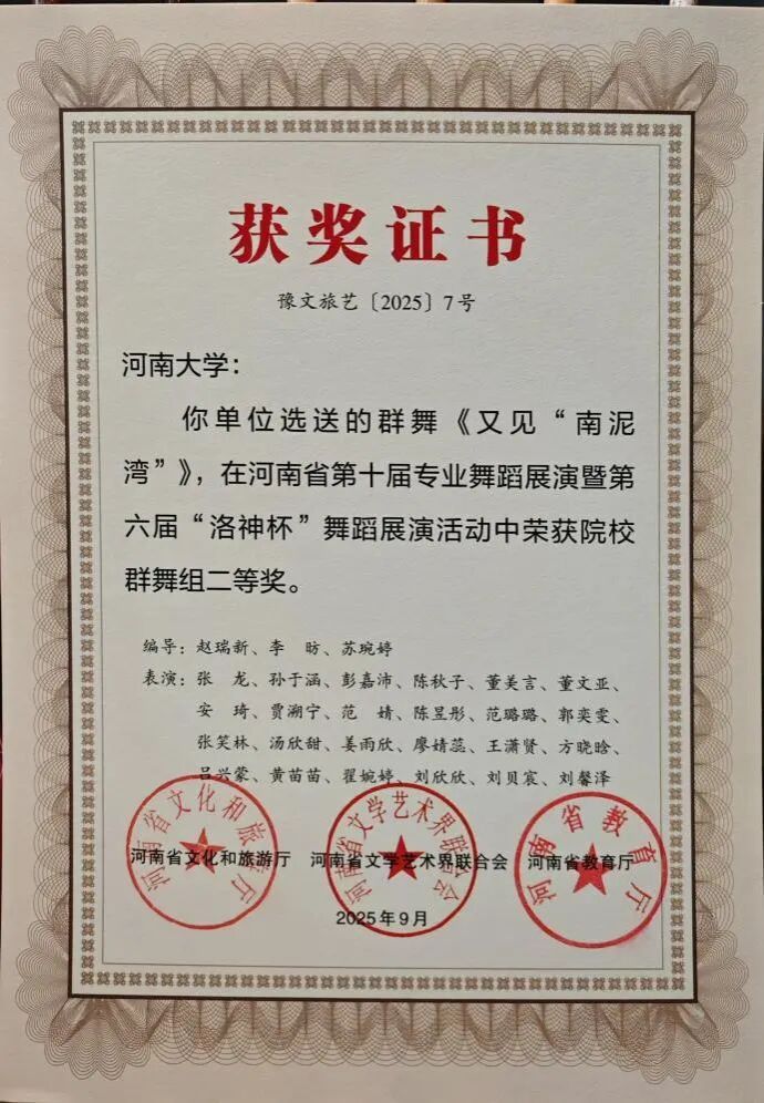 舞蹈展演方面包括二等奖4项:原创当代舞群舞《又见“南泥湾”》,原创古典舞《滚灯闹元宵》《忆兮竹林》和原创现代舞独舞《lose control》;