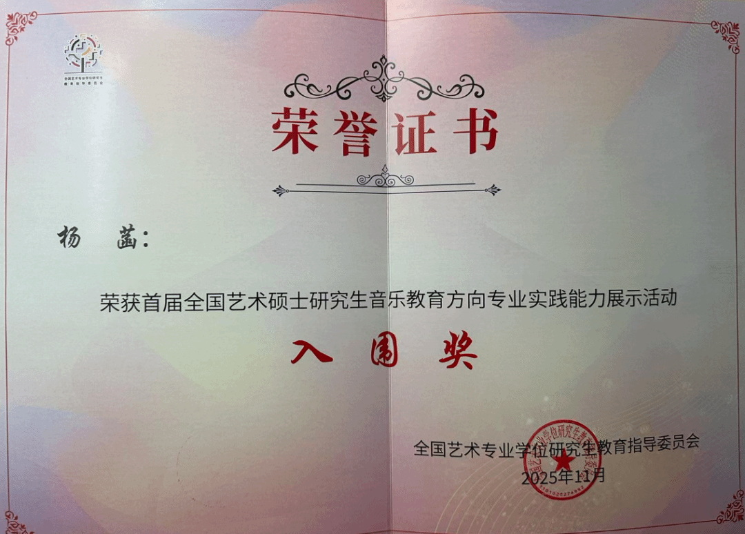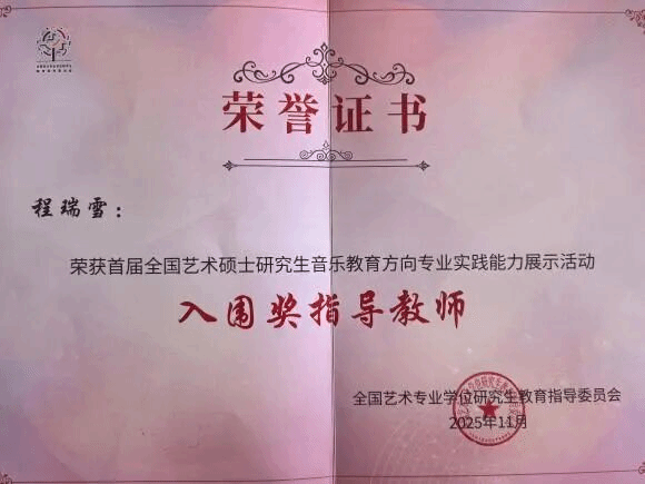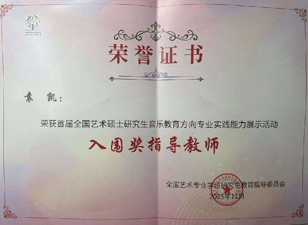 音乐教育人才培养的卓越成果。晋素梅(小学组)、杨菡(初中组)荣获“入围奖”,程瑞雪、袁凯荣获“入围奖指导教师”。此次优异成绩的取得,既源于师生团队历时数月的精心打磨,也得益于学院“以赛促教、以赛促研”培养机制的持续深化。