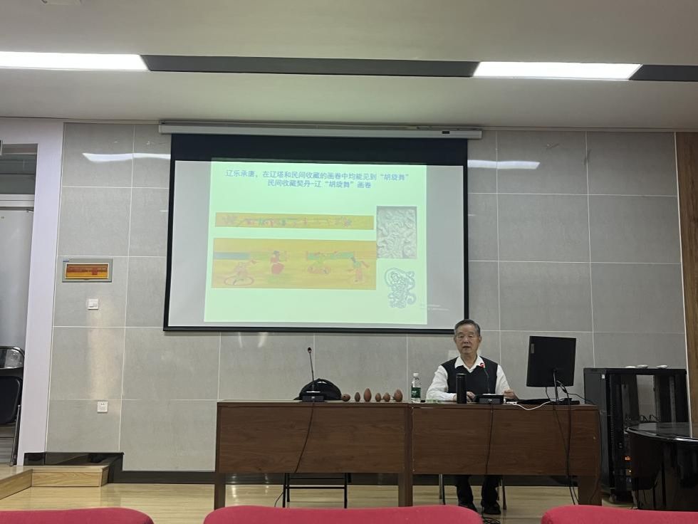 谈及博物馆与文管会收藏的音乐类文物,陈教授首先以辽宁地方博物馆藏兴隆洼石埙为实例,结合自身实验考古的实践测音,指出并纠正了博物馆对该器物的误判。随后,他又以红山陶埙、辽代吹籥画像石、辽代乐舞图像等珍贵音乐文物为核心素材,系统阐述了中国古代音乐器物在形制设计与功能用途上的丰富性、多样性。同时,通过实物佐证,还原了文献中“籥”的历史使用场景,并进一步解读了辽宁双塔寺西塔所承载的梵文内涵与太阳、火崇拜的文化寓意。