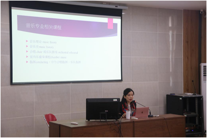 的课程体系设置和对大家的建议,以及她自己美国留学的一些感想。之后她给老师和同学们留下提问时间,当场为很多同学解决了专业领域的困惑与问题。