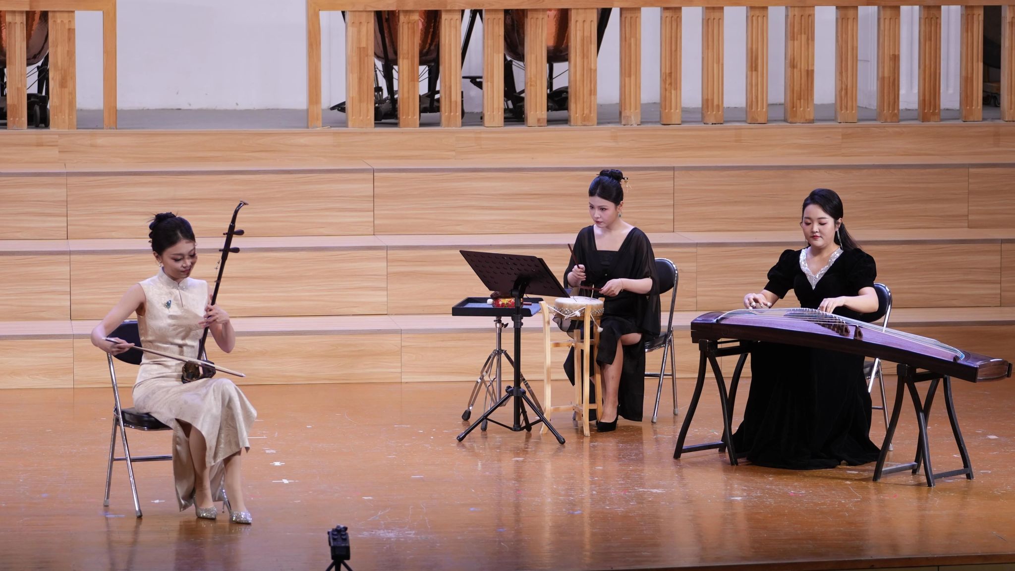 一曲热情明快的《河南小曲》奏响,音乐会正式拉开帷幕。郑博尹老师与卢琪老师、刘乐盈同学的器乐合奏,瞬间调动起现场气氛,浓郁的河南音乐韵味扑面而来。
