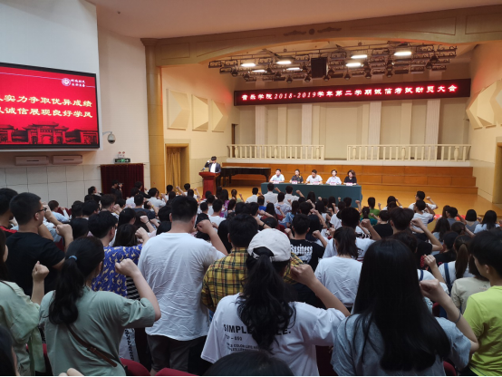 2018—2019学年第二学年诚信考试动员大会在音乐厅举行。学院学生工作相关领导、老师,全体学生党员,以及学院学生干部、各年级学生代表参加会议。会议由院团委负责人金慧老师主持。