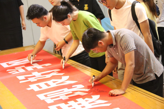 会后,参会同学在诚信考试条幅上庄严写下了自己的名字。