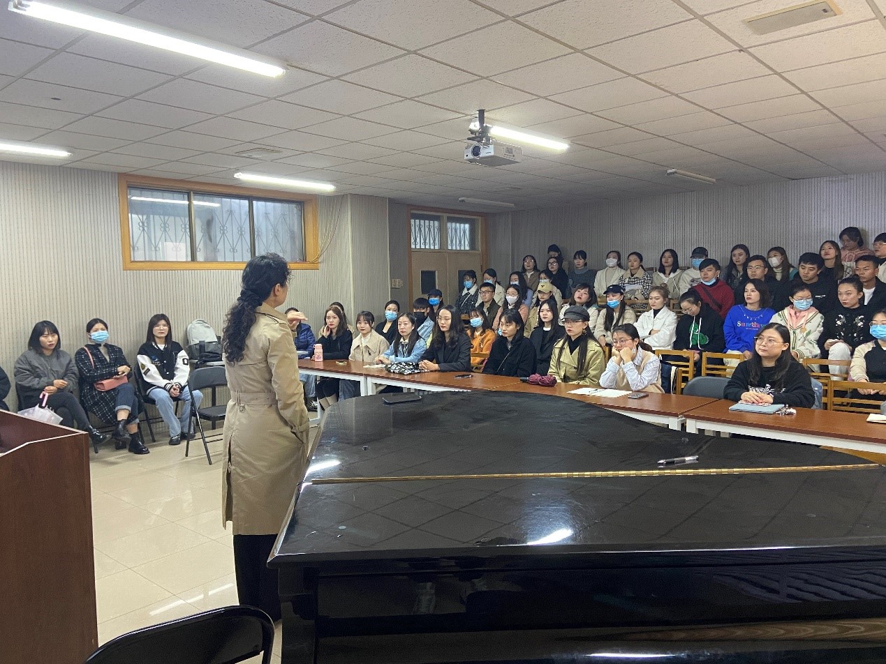 韩梅首先向大家介绍了硕士学位点的建设历史,结合硕士培养方案向大家讲解了关于专业学位、学术学位的毕业要求,重点讲解了学位论文的撰写、评审等问题,并对19级研究提出三点要求:一是要对标新的培养方案,做好自我学习管理,自觉成长成才;二是要重视研究生艺术实践及创新能力的培养,鼓励大家多参与比赛及演出;三是要努力提升专业硕士学位音乐会、学术硕士讲座的水平,遵守学术诚信,认真撰写论文。