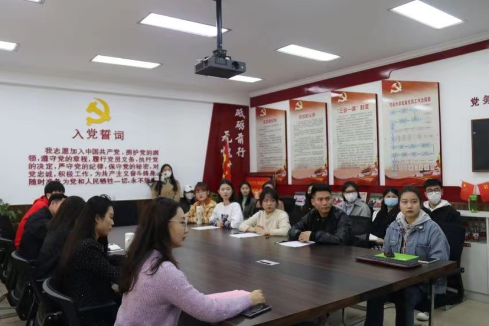 以云课堂线上讲座的形式,在新艺术楼三楼党建活动室举行思政第一课。院党委副书记柴芳,党办主任金慧,团委负责人赵瑞新,本科生辅导员刘可可、樊敬岩及学生代表线下参加了此次活动,课程由金慧主持。