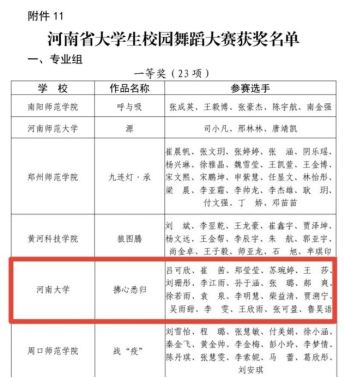 河南省大学生校园舞蹈大赛,作品《拂心悉归》荣获专业组一等奖,《我们的妈妈》荣获专业组二等奖。