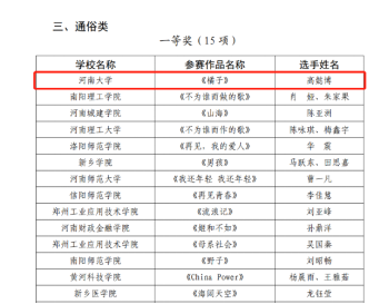 近日,河南省教育厅、共青团河南省委、省文化和旅游厅、省科学技术厅、省学生联合会联合下发《关于发布河南省第十七届大学生 网上科技文化艺术节获奖作品(个人)和优秀组织单位名单的通知》(豫青联字〔2022〕9 号)。本次科技文化艺术节中学院成绩斐然,喜获奖项20项,其中14个一等奖,4个二等奖,2个单项奖,16名教师荣获优秀指导教师称号。