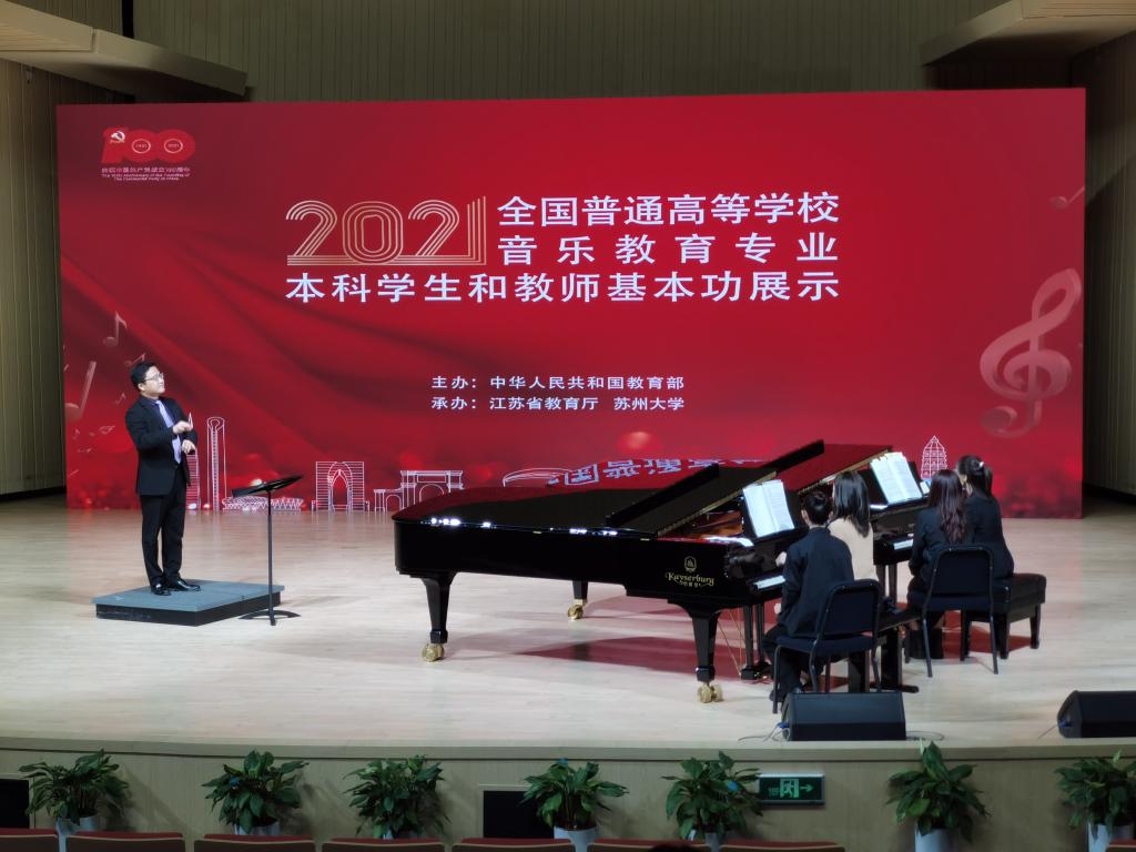 据悉,2021年全国普通高等学校音乐教育专业基本功展示活动于2021年10月18-22日在苏州大学举行,来自全国31个省(市、区)和新疆生产建设兵团77所高校的225位教师和195名学生参加此次活动。本次活动不仅是对高校音乐教育专业本科培养目标达成情况的一次全面检阅,更是对音乐教育专业改革与发展的积极引导和有力推动。