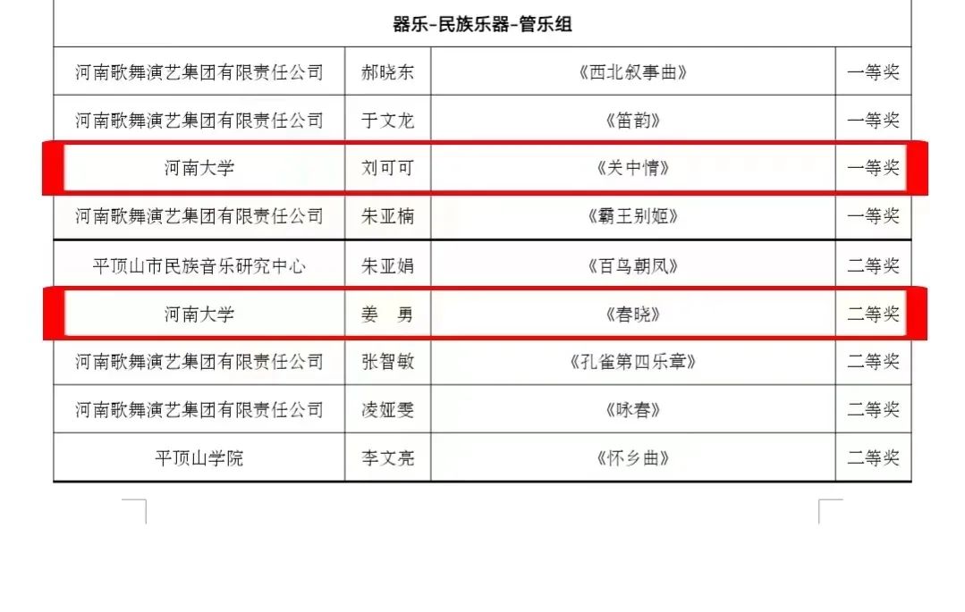教师郭晓艳、张宗伟、王军,硕士生裴云豪、白红丽、张炜懿荣获声乐组奖项。