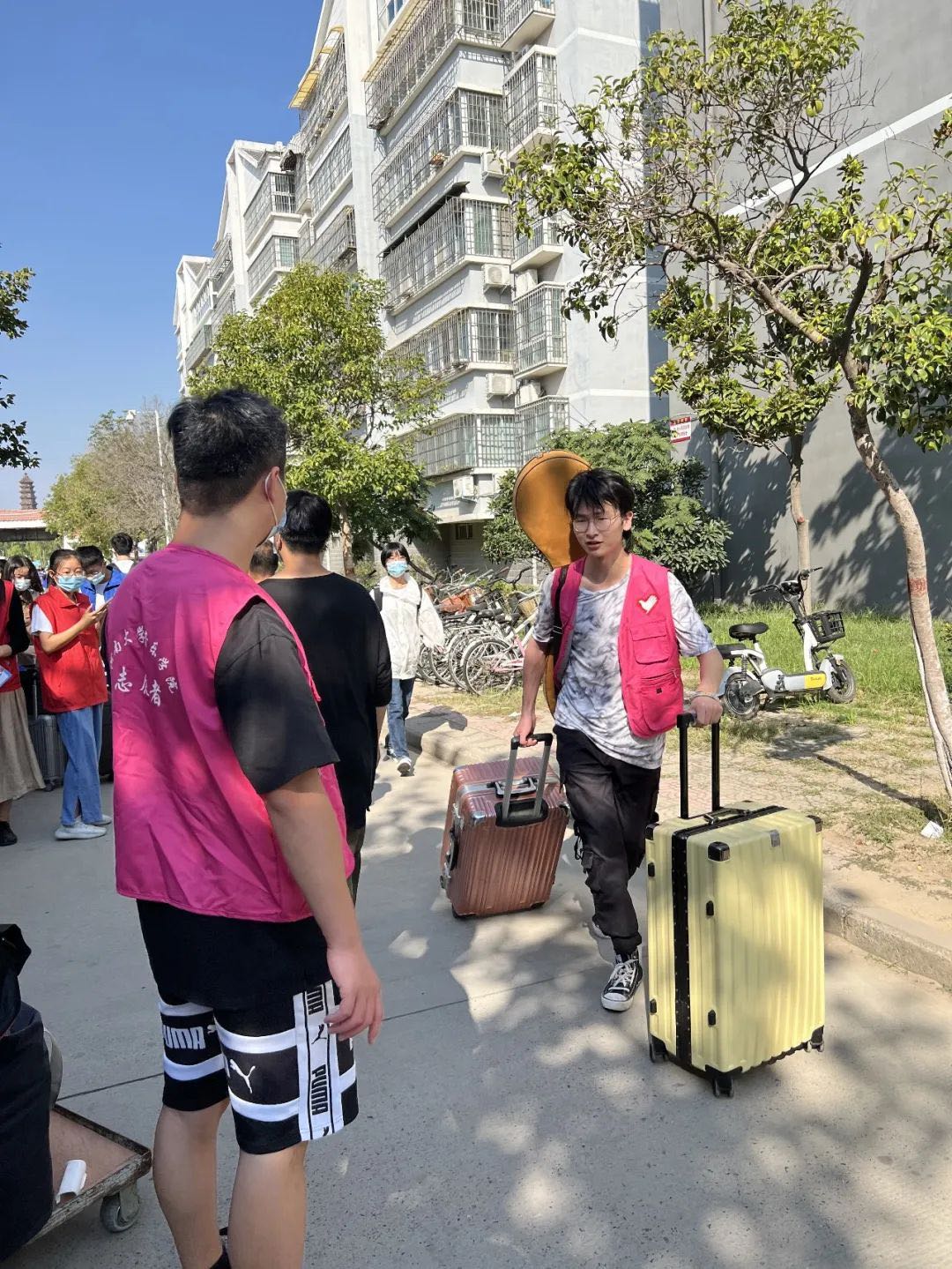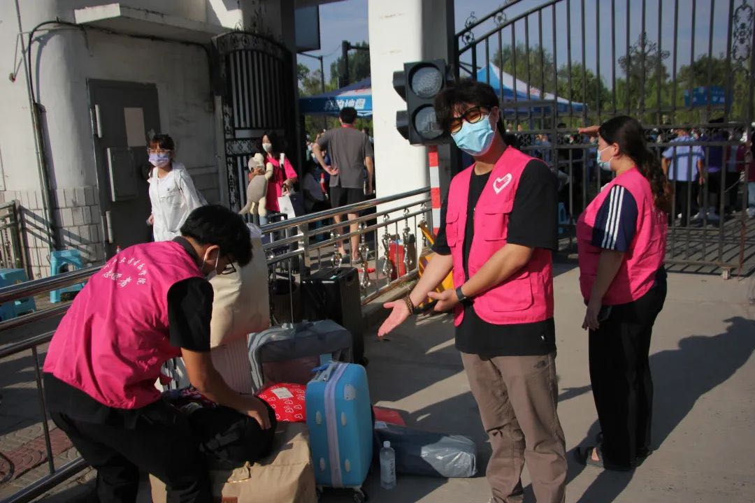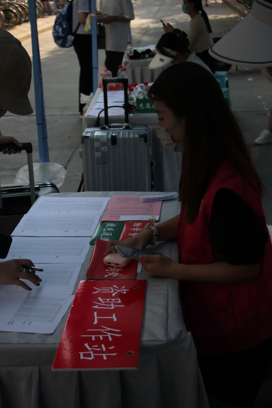 志愿者们积极为新生搬运行李,并对健康码、行程码、核酸检测结果等材料进行认真核实。志愿者们坚守岗位,不辞辛劳,烈日当空也无法阻挡大家热情的步伐,迎新工作有序开展。