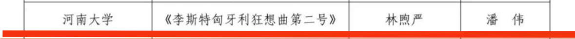 钢琴系作品《李斯特匈牙利狂想曲第二号》《百鸟朝凤》荣获专业组一等奖。作品《李斯特匈牙利狂想曲第二号》荣获“我最喜爱的大科节作品”奖。