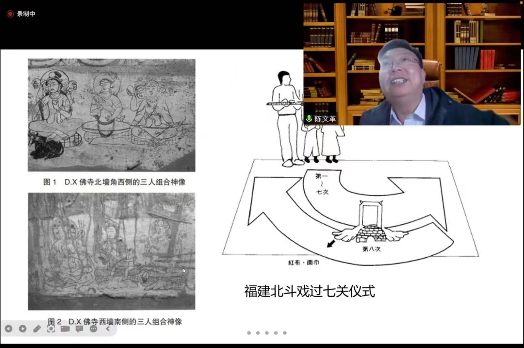 陈文革教授分享的题目是“我从汉朝来:一个沟通古今的‘桥’的话题”。他通过引用和分析多年来自己在田野调查、学术积累中获取的视频、图像和文献资料,结合近年来的个人研究成果,将考古资料、历史文献与活态传承相结合,深入浅出地讲述了“阈限”“桥”“门”“关”等时空关键词与戏剧戏曲之间的内在联系。