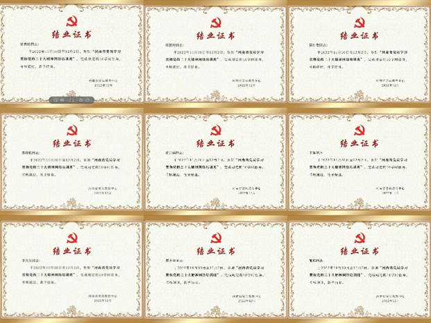 落实“三会一课”,支部成员按期参加“河南省党员学习贯彻党的二十大精神网络培训班”并结业。