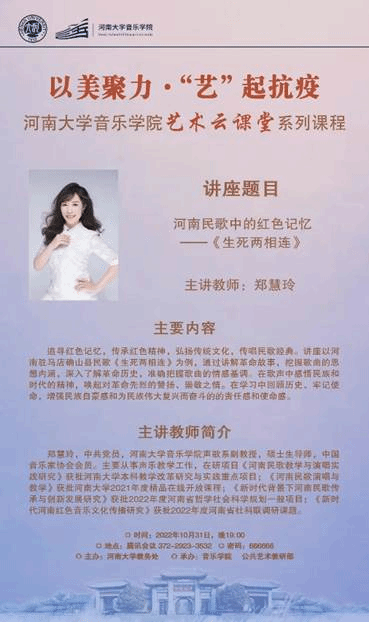 艺术云课堂》活动中,以“河南民歌中的红色记忆——《生死两相连》”为题为大家做精彩讲座。