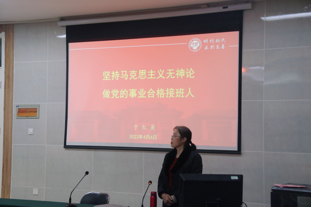 仪式结束后,校党委统战部副部长于红英带来了本期培训第一次课程《坚持马克思主义无神论,做党的事业合格接班人》。