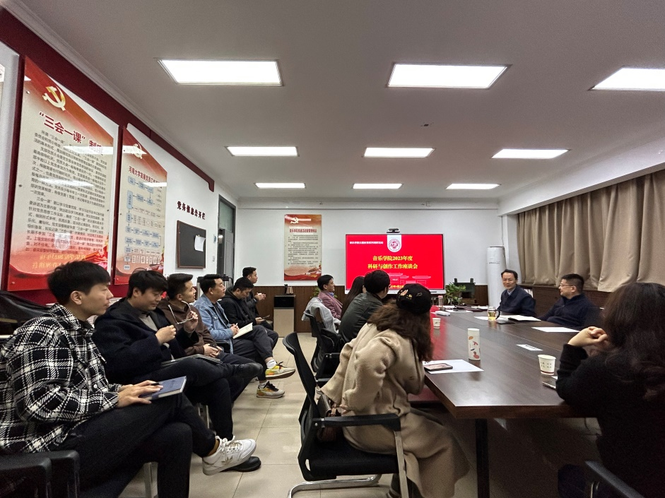 会议第一阶段,王新向与会人员通报了近三年学院教师在科研与创作方面取得的业绩,对组织开展2023年度国家社科基金项目、国家艺术基金项目申报作了动员。