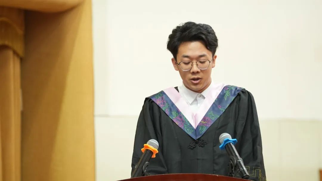 毕业生代表程龙代表全体2023届本科生向母校和老师致以崇高的敬意。他在发言中感谢学校学院的精心培养,感谢老师们的谆谆教导。河大是根,是同学们内心的一方净土,也是同学们魂牵梦绕的地方。还未踏出校园,就已经开始眷恋。他表示,在未来的征途上,一定要守得魂,守住根,守得初心,守住铁塔牌的称号!在校生代表、2020级本科生魏咏茜,向学长学姐们送去最真挚的祝福。今日一别,此去经年,祝愿学长学姐们一路繁花,前程似锦。