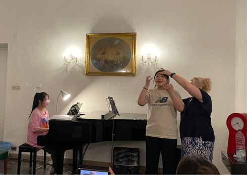声乐教育家Michela Sburlati教授的教学理论体系具有充足的理论依据支撑和丰富的实践课堂经验,她从科学的角度出发,将生理解剖图与音乐教学相结合,让同学们了解到声乐学习必须运用到的具体生理部位,明确歌唱时的肌肉运动轨迹。通过Michela Sburlati教授点面结合、环环相扣的系统化课堂教学,同学们的专业技能得到了显著提高。