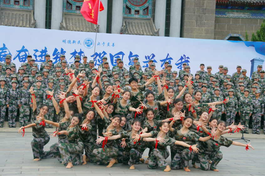 比赛现场,同学们充满朝气和活力,在指挥老师的带领下,他们用铿锵有力的声音,表达了对国家、军队和学校的热爱和敬意。胜利既属于牺牲休息时间,不计付出地帮助大家排练的辅导员老师和学长学姐们,又属于每一位即使骄阳当头也坚持排练,毫无怨言的同学们。看,大礼堂前同学们昂首阔步,英姿飒爽,军姿雄风谁与争锋;听,同学们以饱满的状态和真挚的情感放声高唱。百年河大,弦歌不绝。