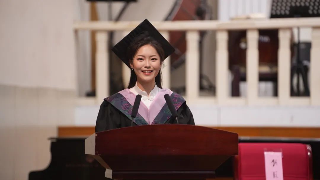 在校生代表、2021级音乐学专业刘佳盼,向学长学姐们送去最真挚的祝福。“成功是一种觉悟,不是一种结果。”愿你们在人生的道路上不忘初心,坚持梦想,不断追求自己的目标,用智慧和勇气书写属于自己的精彩篇章。祝愿所有即将毕业的学长学姐们前程似锦,愿你们永远怀揣着青春的梦想,勇敢地向前,闯荡人生的旅程!