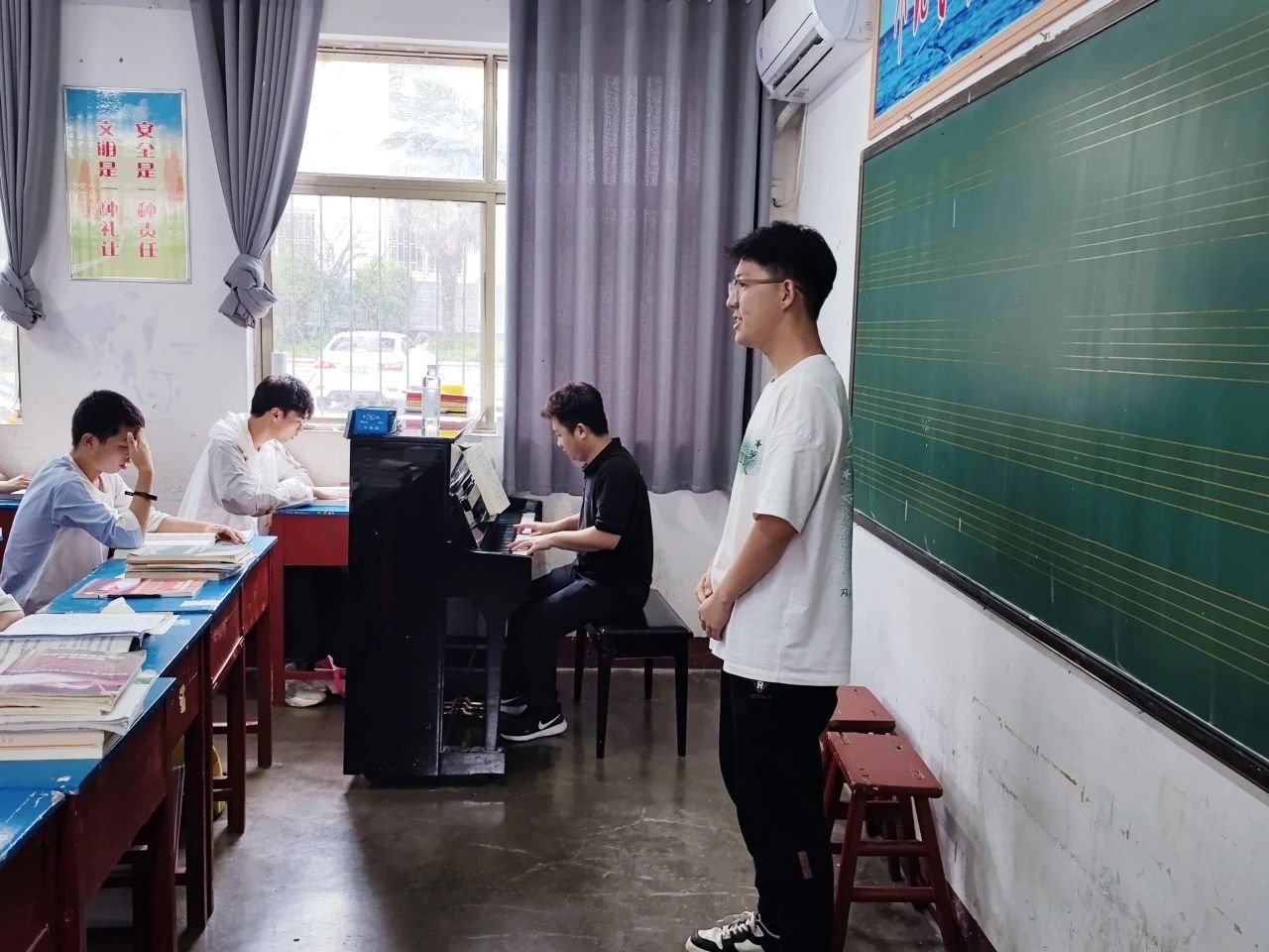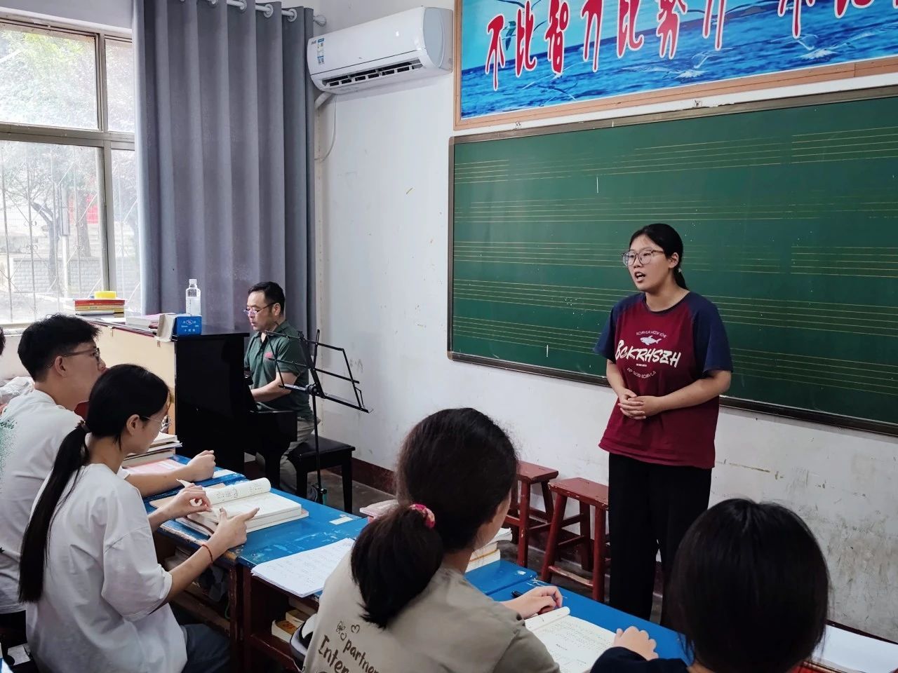 共选派徐冬艳、冯安君、王计鹏等多位多年参与此项目的教师和2名硕士研究生组成支教团,驻守潭头镇、开展支教帮扶。支教团紧扣音乐高考最新动向和科目要求精心设计课程,结合当地师生的实际需求因材施教、解答疑惑。本次培训,课程目标精准,教学活动层层递进、环环相扣,师生、生生互动交流愉悦,教学效果好,目标达成度高。支教团爱岗敬业,用心教书育人,为潭头学生输入艺术与文化的双重滋养,为潭头教育发展注入新鲜的血液,深受当地师生、学生家长欢迎。