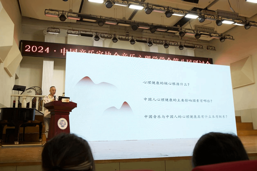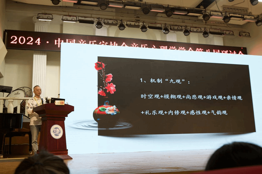 郑茂平教授的主旨报告探讨了中国音乐心理健康的时空观和音乐心理健康的多维模式。郑教授的团队围绕三个核心问题“心理健康的核心根源是什么”、“中国人的心理健康主要影响因素有哪些”、“中国音乐与中国心理健康之间的联系”开展了相关研究。郑教授认为,心理健康的根本在于时空意识的建立,而中国音乐是构建这种时空意识的最佳途径。郑教授引用了古人的观点,强调中国音乐与天地万物的关系,认为音乐不仅是学习知识的手段,而且与我们的生活息息相关。
