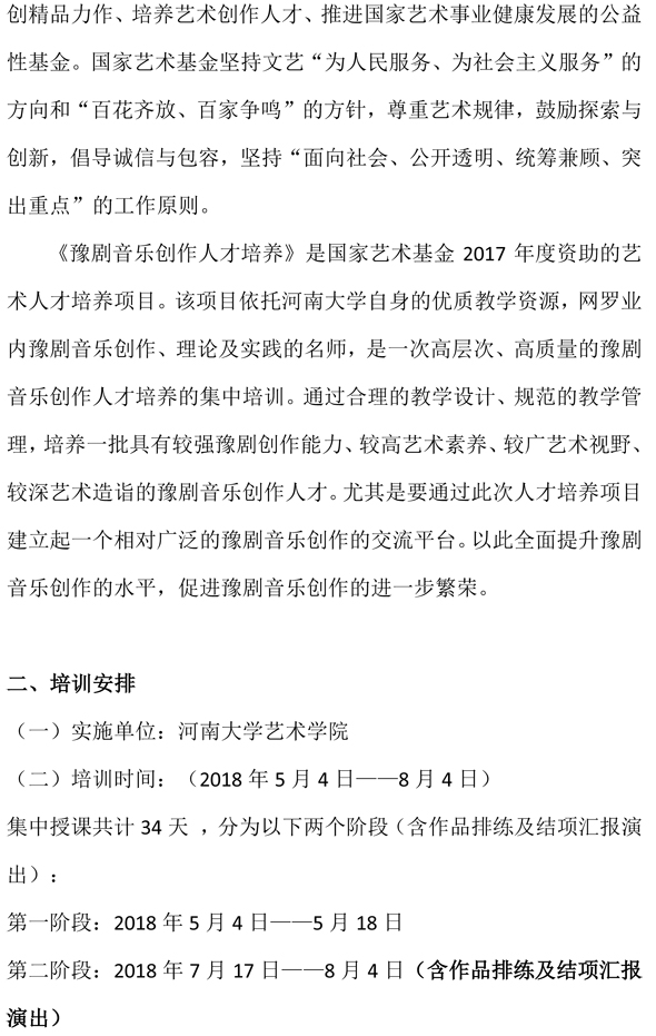 国家艺术基金2017年度艺术人才培养资助项目《豫剧音乐创作人才培养》招生简章