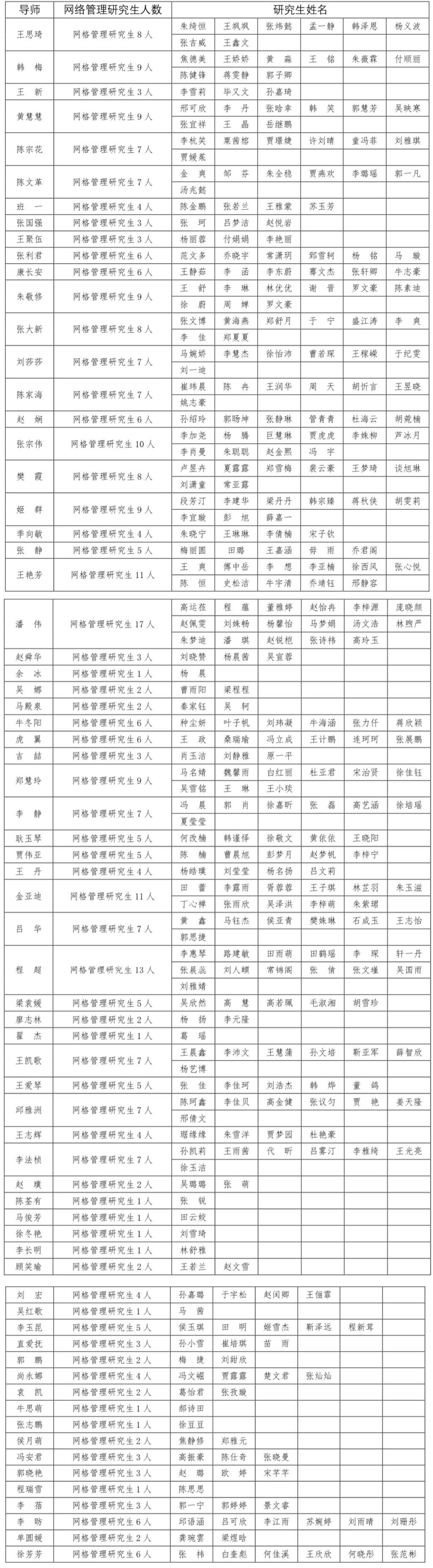 张志鹏(辅导员):网格管理研究生共 345 人。