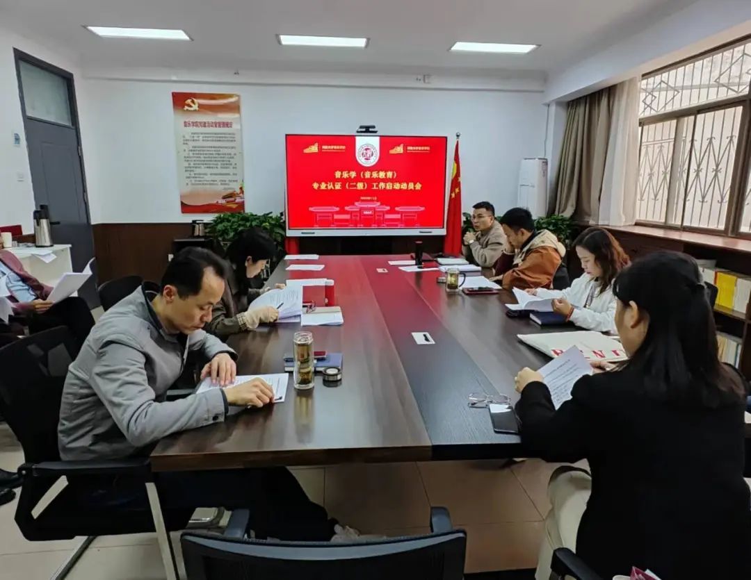 学院在党建活动室召开音乐学(音乐教育)专业认证(二级)工作启动动员会。王思琦院长、王聚伍副院长分别对认证申报阶段各项工作进行部署及动员。