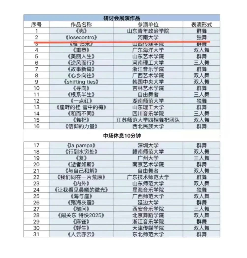 舞蹈编导专业本科生马龙表演的独舞作品《Lose Control》,经过严格遴选从全国众多高校作品中脱颖而出,成功入选“2025现·当代研讨会作品展演”单元。