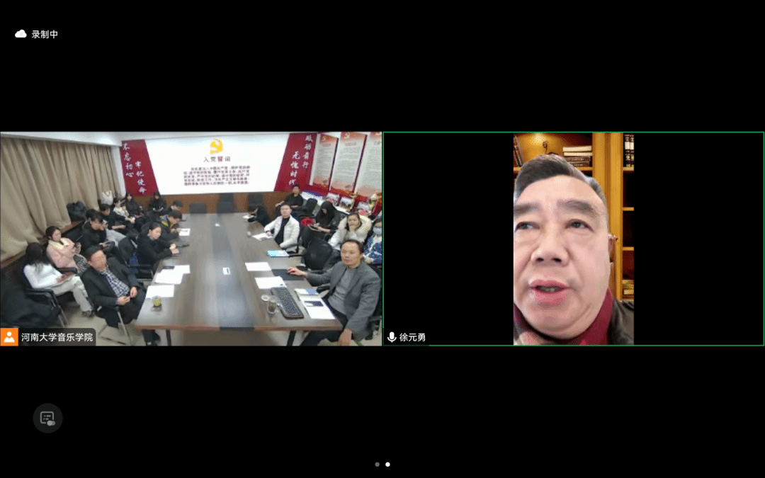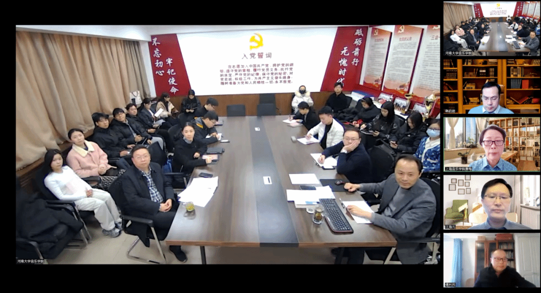 研讨会采取线上线下相结合的方式进行,河南大学音乐学院的部分师生在学院主会场参加会议,国内兄弟院校的学界同行、专任教师、本科生和研究生通过线上平台参会。研讨会由安徽师范大学音乐学院院长、博士生导师汪海元教授主持,陈文革教授担任学术评议。
