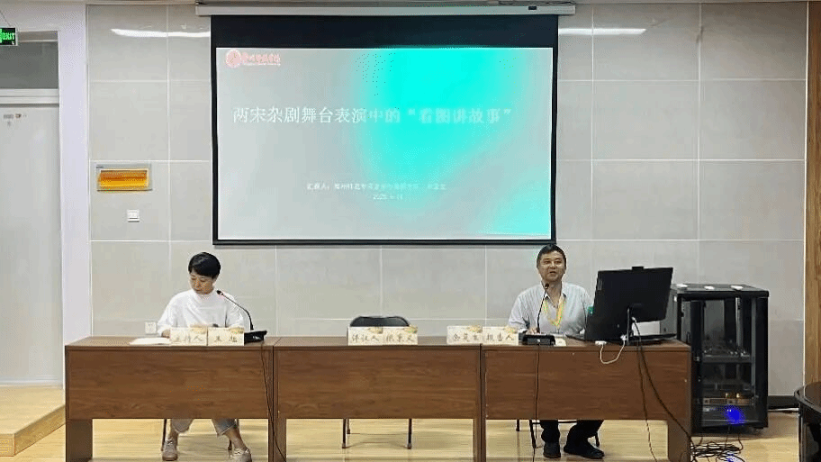 郑州师范学院音乐与舞蹈学院余复生副教授以《两宋杂剧舞台表演中的“看图讲故事”》为题,探讨两宋时期杂剧表演中“看图讲故事”这一独特形式的起源、形态及其在戏曲史中的意义。他指出,该形式在文献中又称“看图讲诵”或“看图讲唱”,既往研究多偏重于说唱艺术层面,而对其在戏曲艺术中的功能与表现关注不足。余老师借助多幅杂剧图像资料如洛阳偃师酒流沟砖雕、关林庙宋墓人物砖雕、四川宝林镇杂剧石刻等指出,杂剧人物常为手持立轴画的现象,并引发对其功用的深入探讨。此外,通过比对元代壁画如运城西里庄元墓壁画和永乐宫壁画中的类似图像,他提出这些画轴可能用于“看图讲故事”,甚至可能是唐代变文讲唱形态在宋元戏曲中的延续。