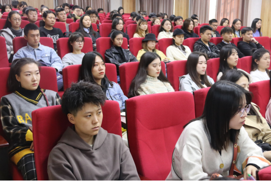 张国强以“本次党课选题的背景、何为家国情怀、如何实现文艺报国”为主线,结合自己深入学习贯彻习近平新时代中国特色社会主义思想的认识和体会以及个人的成长经历,为同学们带来了一堂生动的党课。