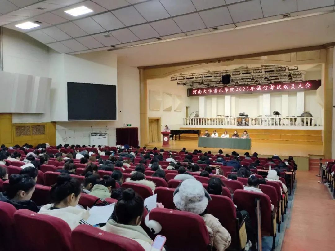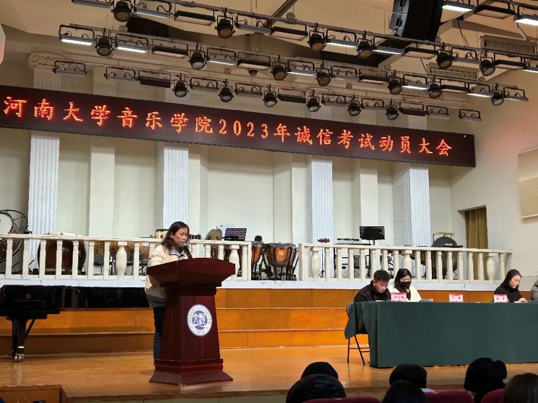 2023年诚信考试动员大会在音乐厅顺利召开。院党委副书记柴芳、院团委负责人赵瑞新、教务处陈金鹏、2022级辅导员卢琪、2023级辅导员王计鹏及2022级、2023级全体本科生参加本次大会。会议由王计鹏主持。