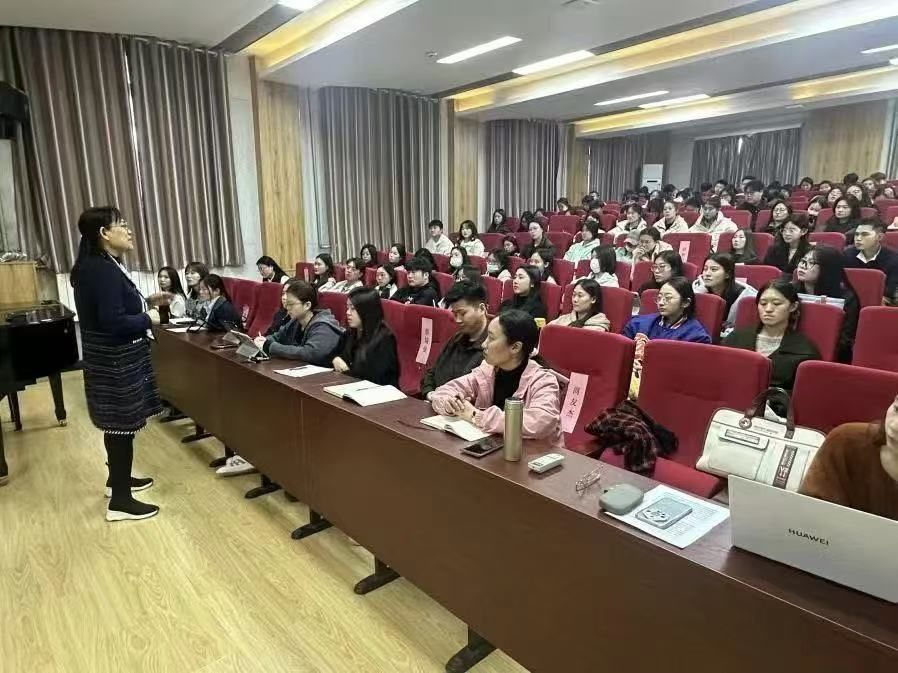 王鲜萍以坚持民族团结,落实宗教政策为主题,强调了铸牢中华民族共同体意识的重要性,引导学生树立四个与共的共同体理念,树立正确的世界观、人生观、价值观。
