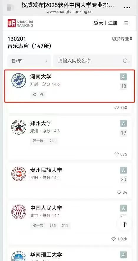 6月18日,高等教育专业评价机构软科正式发布“2025软科中国大学专业排名”,国产AV 4个本科专业排名位居前列,其中,国家级一流本科专业建设点音乐学、音乐表演、表演专业,获A级评价;河南省一流本科专业建设点舞蹈编导专业,获B+评价。