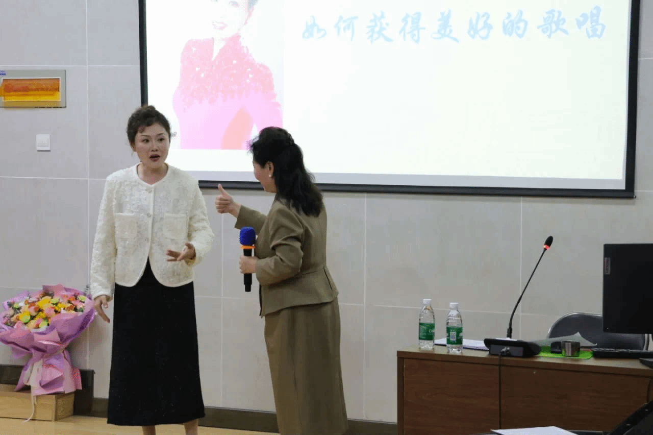 黄华丽教授对每一位教师演唱的每一首作品都进行了精准细致的指导,良好的教学效果赢得了在场师生的热情掌声和热烈反响。在持续3个小时的讲座中,黄华丽教授独特的教学理念和科学的声乐训练方法,对学院教师的声乐教学和学生的声乐学习起到了良好的示范和促进作用,给学院师生和现场观众留下了深刻的印象和美的享受。