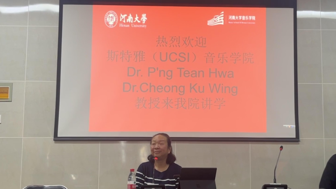 11月27日上午,受河南大学音乐学院邀请,马来西亚 UCSI 大学音乐学院院长Dr. P'ng Tean Hwa、音乐学院研究生系系主任Dr.Cheong Ku Wing在音乐学院学术报告厅举行主题为 “理论研究对于学习音乐表演专业的重要性”的专题讲座。本次讲座由姬宁副院长负责、外事秘书王杨老师主持。音乐学院相关专业教师、本科生、研究生代表参与了此次活动。