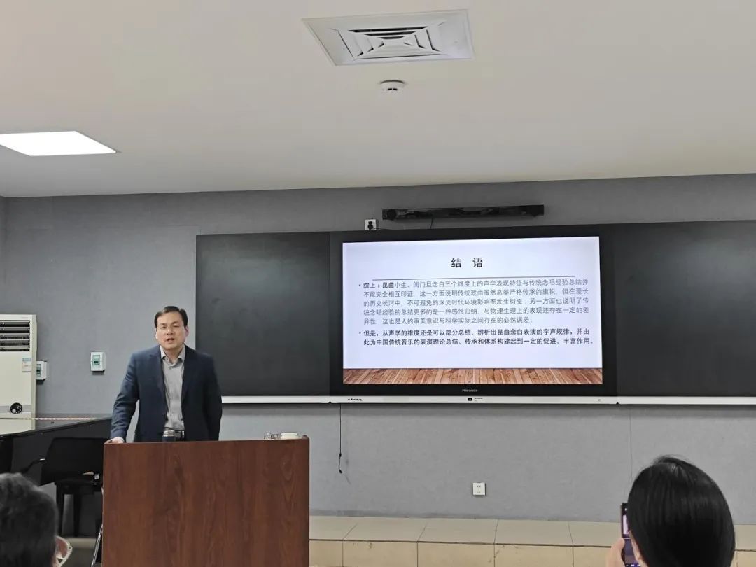 院长韩启超教授担任主讲,音乐理论系副主任薛培副教授主持讲座。