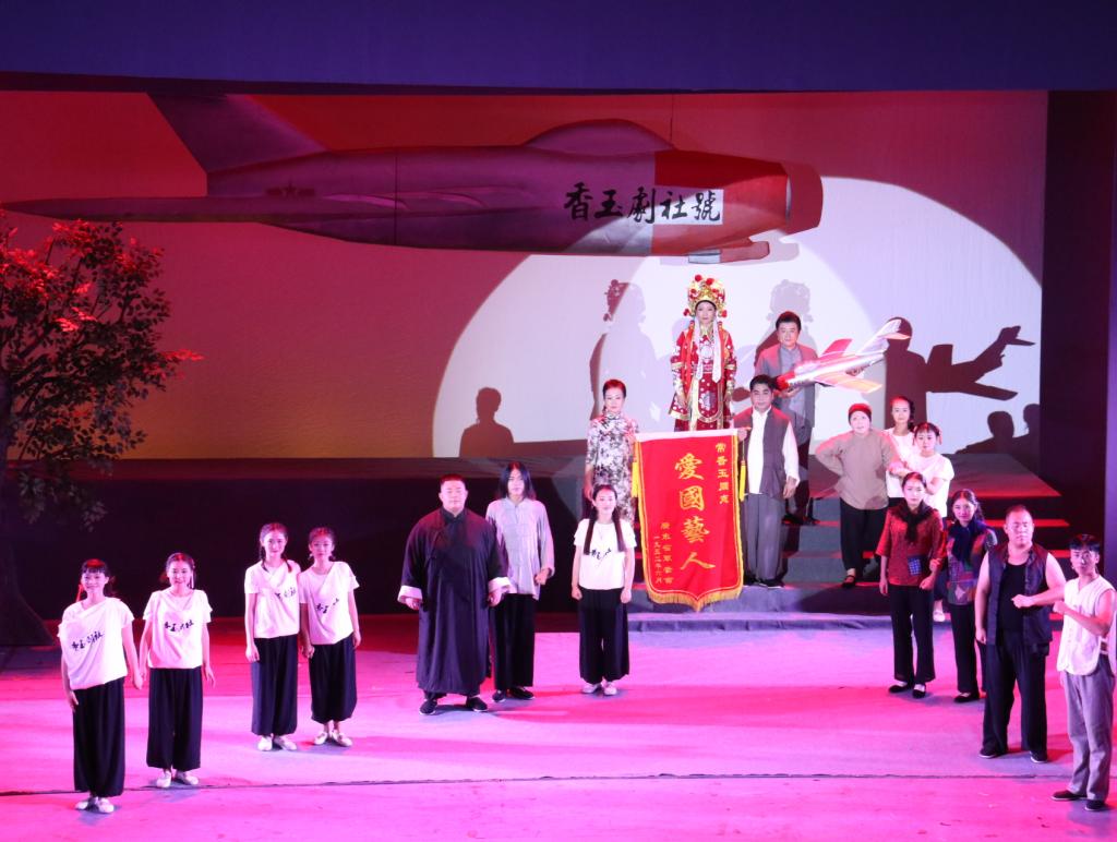 纵使“砸了牌子”也要背水一战。“谁说女子不如男••••••”,舞台上的黄慧慧化身花木兰,一身战袍披坚执锐。在场观众、学生王苗苗感慨:“听到黄老师唱这耳熟能详的花木兰选段,仿佛看到了在后方和前线士兵一起奋战的常香玉大师。”然而,这一战就是180多场全国义演。半年间,香玉剧社走遍大江南北,日夜兼程,就这样奇迹般的完成了捐献一架价值15亿元(旧币)战斗机的伟大使命。当“香玉剧社号”战斗机模型从百年礼堂舞台上空缓缓降落,观众们高声欢呼,掌声不断。