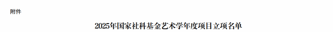 国家社科基金艺术学项目是由全国艺术科学规划领导小组办公室统筹管理、文化和旅游部指导,面向全国艺术学研究领域的国家级科研资助项目,在我国艺术学研究体系中具有最高层次、最大资助力度和最强权威性。作为国家级科研标杆,其立项结果不仅是衡量高校及研究机构艺术学科研实力与学术水平的核心指标,更通过支持跨学科研究、重大理论与实践问题攻关,发挥着引领艺术学研究方向、培育高端人才、服务国家文化建设大局的示范作用。