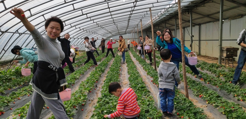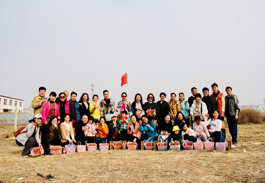 院长王思琦,党委副书记党鸿军,副院长、工会主席李计成,院党委委员、工会副主席徐冬艳和女工委员吕华带着大家踏上了摘草莓的幸福旅程。