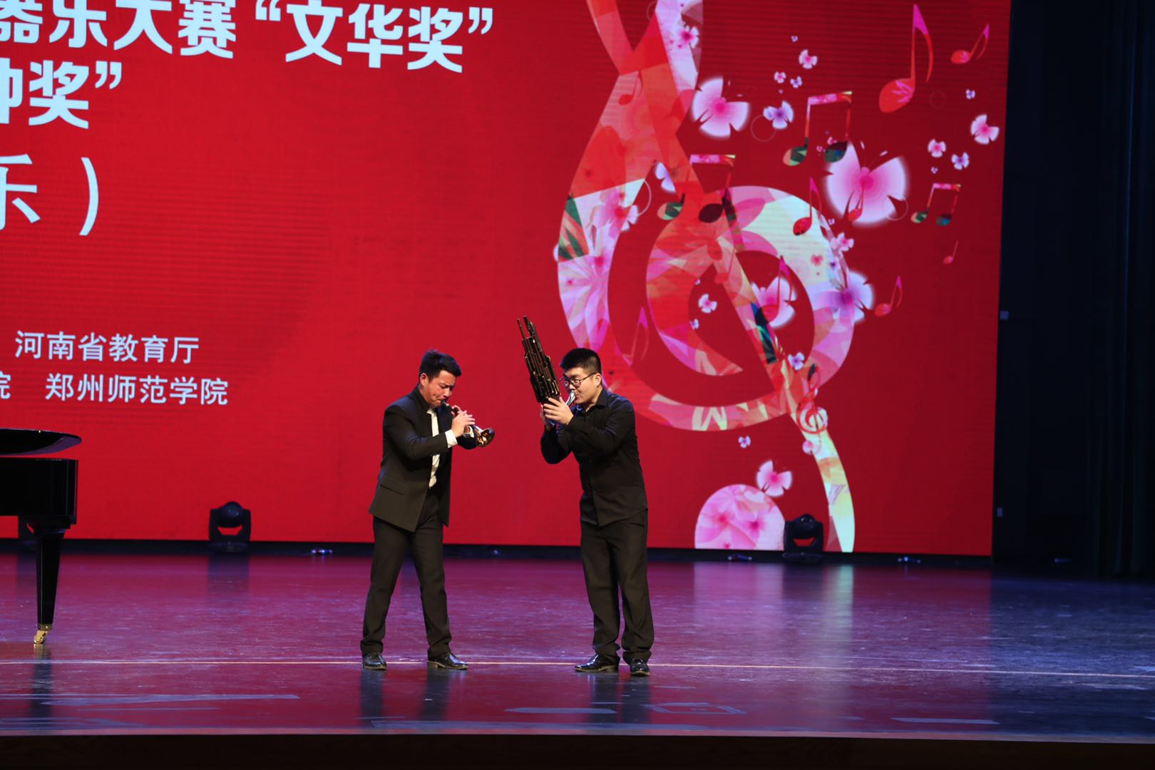 10月16日至21日,由河南省文化厅、河南省文学艺术界联合会、河南省教育厅联合主办的第七届河南省专业声乐器乐大赛“文华奖”暨第四届河南音乐“金钟奖”评选活动在郑州师范学院举行。本次大赛是河南省声乐器乐专业大赛“文华奖”与河南音乐“金钟奖”评选首次合并举行,也是我省首个由省文化厅、省文学艺术界联合会、省教育厅三家联合主办的专业音乐类大赛,是专业声乐器乐的省级最高赛事。
