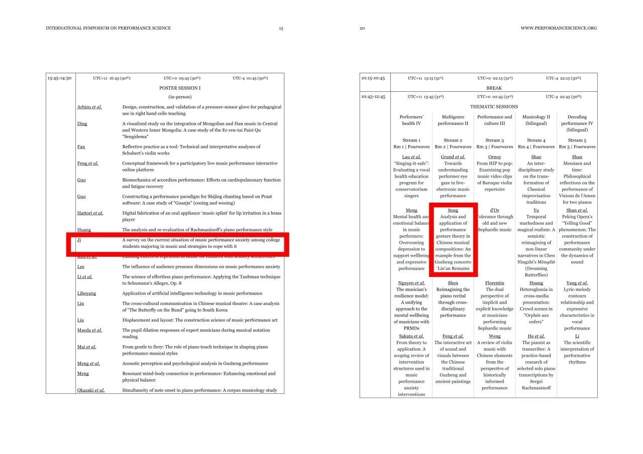 表演科学国际研讨会(International Symposium on Performance Science,ISPS)每两年举行一次,邀请全球从事音乐、舞蹈、戏剧、商业、医学和体育领域工作的科学家和表演者参加,旨在创造一个跨学科的高端平台以深入研究和了解人们如何表演、如何更有效地学习表演,以及表演对社会的影响。迄今为止,ISPS已经成功举办九届,以往的会议曾在葡萄牙·波尔图(2007年)、新西兰·奥克兰(2009年)、加拿大·多伦多(2011年和2021年线上)、奥地利·维也纳(2013年)、日本·京都(2015年)、冰岛·雷克雅未克(2017年)、澳大利亚·墨尔本(2019年)、加拿大·蒙特利尔(2021年)和波兰·华沙(2023年)等地区的顶尖院校举行。ISPS 2025的主题“实践中的表演科学”旨在促进关于表演、教育、科学与社会之间关联的讨论与辩论。