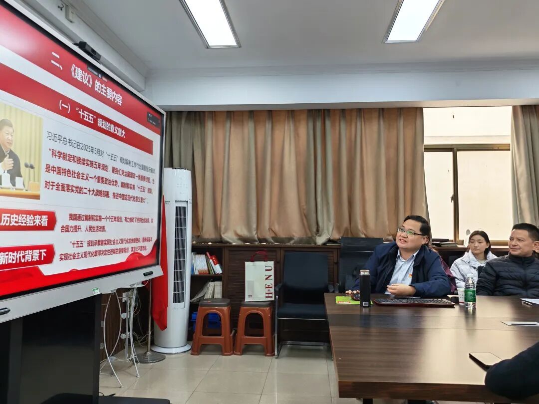 为深入学习贯彻党的二十届四中全会精神,切实把思想和行动统一到党中央决策部署上来,12月23日下午,音乐学院在党建活动室举办学习贯彻党的二十届四中全会精神专题宣讲报告会。学院特邀河南省青年理论宣讲专家、河南大学招生办公室主任高冬东作专题辅导。院党委书记王志国主持报告会。