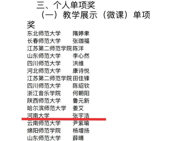 本科生张宇浩荣获教学展示(微课)单项奖
